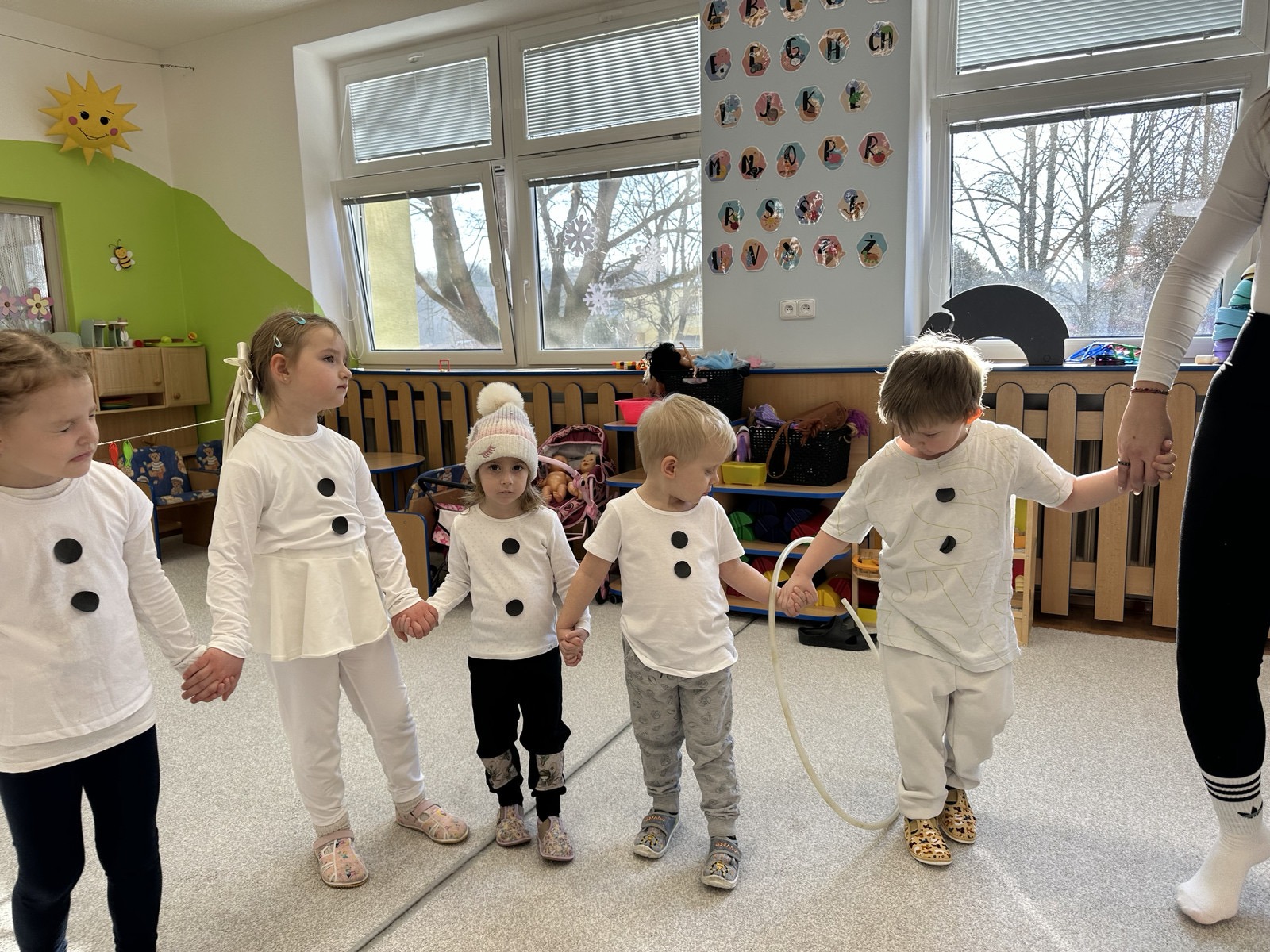 Ve středu 21. ledna 2026 se ve třídě Motýlků uskutečnil tematický Sněhový den, který proměnil děti v malé sněhuláky. Ráno dorazily všechny děti oblečené do bílé barvy a už při příchodu bylo jasné, že nás čeká netradiční a hravé dopoledne.