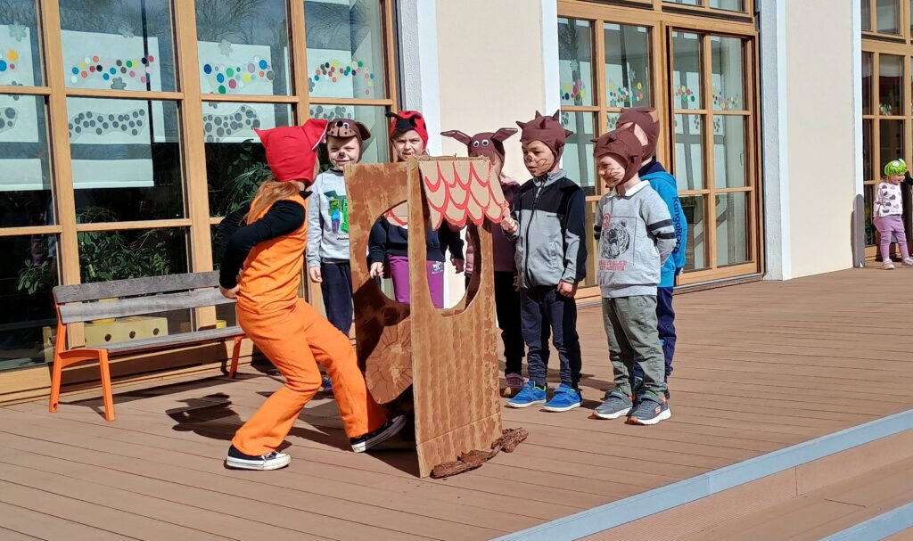 Následovalo putování s úkoly, při kterém děti pomáhaly zajíčkovi Hopíkovi najít a složit rozbité velikonoční vajíčko. Za splněné úkoly získaly pochvalu i odměnu.