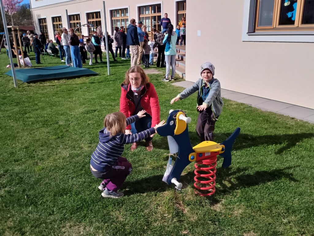 Na školní zahradě naší mateřské školy se uskutečnila jarní akce pro děti a jejich rodiče. Děti ze třídy Včeliček zahájily slunečné odpoledne krátkým vystoupením.
